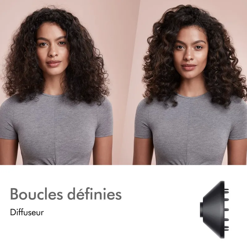 Le sèche-cheveux Dyson Supersonic™ pour cheveux bouclés frisés est munit de ses accessoires magnétiques :