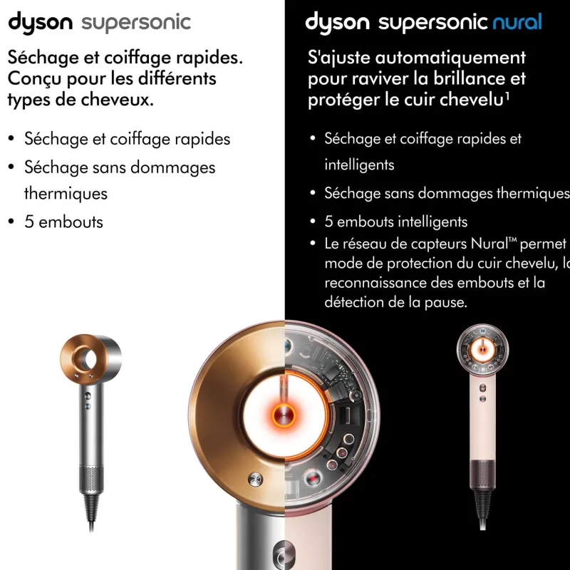 Un concentré de technologie et d’innovation pour un coiffage sur mesure. Avec Supersonic Nural, Dyson transforme votre routine capillaire en une expérience unique alliant protection, performance et élégance.
