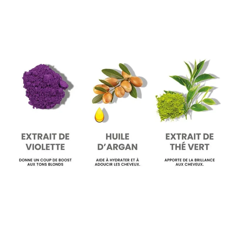 • Neutralise les reflets chauds avec ses pigments violets.