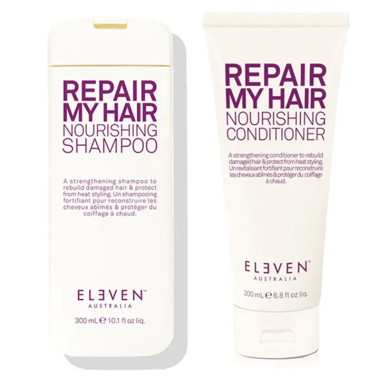 La routine nourrissante Repair My Hair de Eleven Australia est conçu pour nettoyer en douceur et restaurer les cheveux sensibilisés, naturels ou colorés. Ce duo shampooing + soin fortifie la fibre & protège de la chaleur des appareils de coiffage.