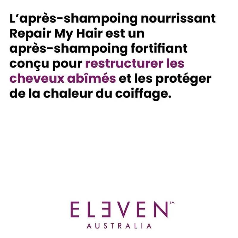L’après-shampooing fortifiant & nourrissant Repair My Hair de Eleven Australia restructure et fortifie les cheveux abîmés.
