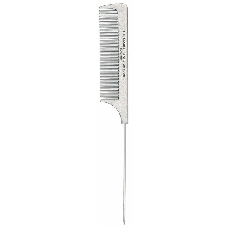 Le peigne à queue métallique antistatique 357 de Ellepi est en céramique ionique.