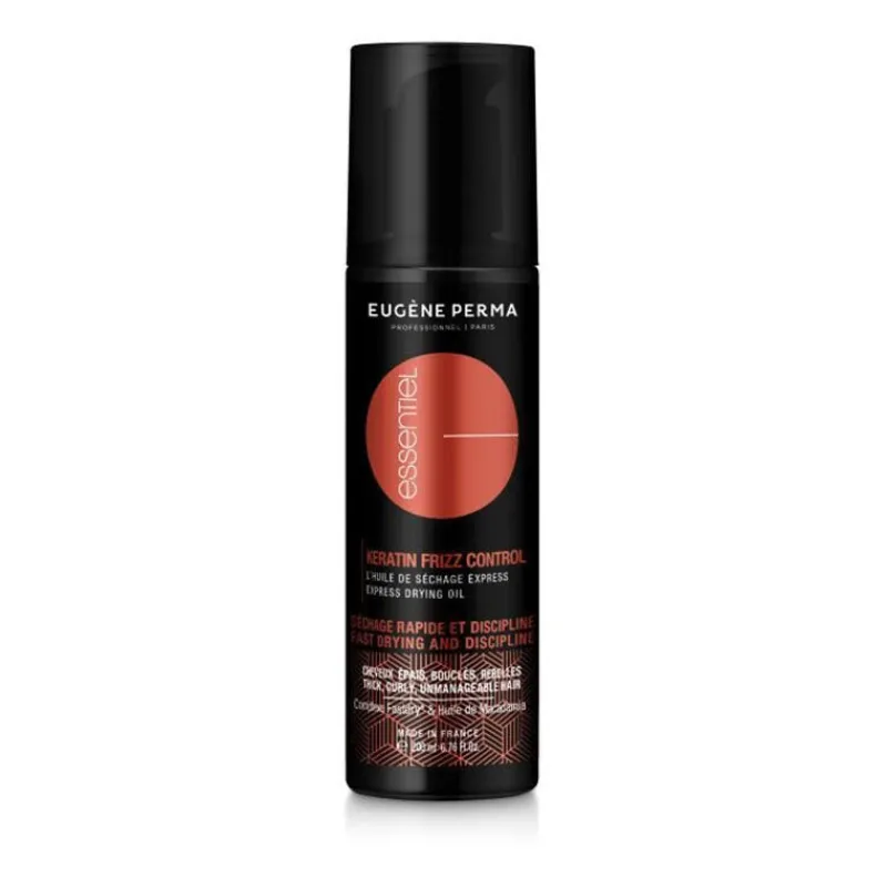 L’huile de séchage Essentiel Keratin Frizz Control Eugène Perma Professionnel Paris accélère le séchage des cheveux bouclés et contrôle les frisottis.