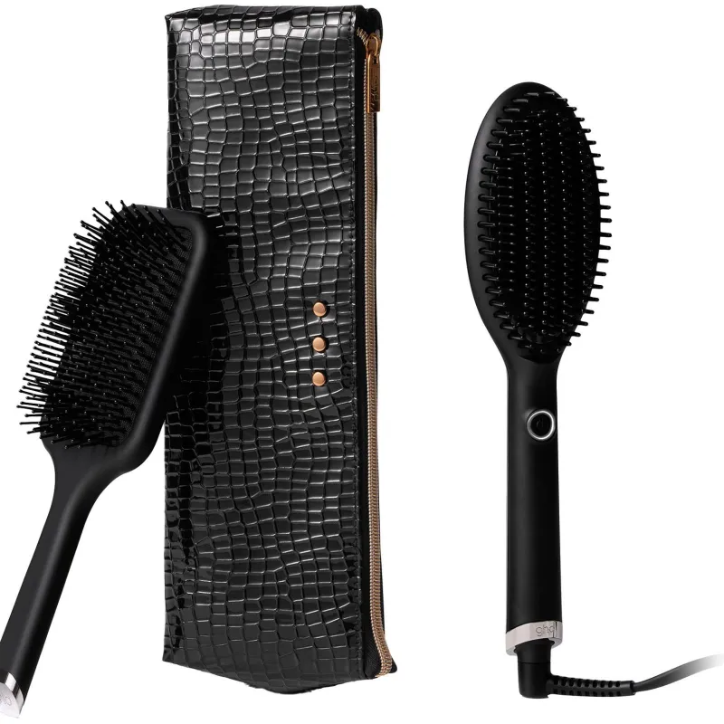 Le coffret d’exception brosse chauffante Glide de ghd réunit l’outil de coiffage incontournable pour un lissage naturel, accompagné d’une brosse plate et d’une pochette thermorésistante. Ce coffret est le cadeau idéal pour des cheveux lisses, brillants et souples au quotidien.