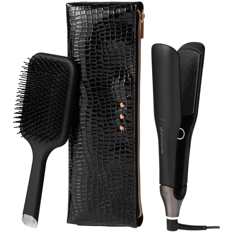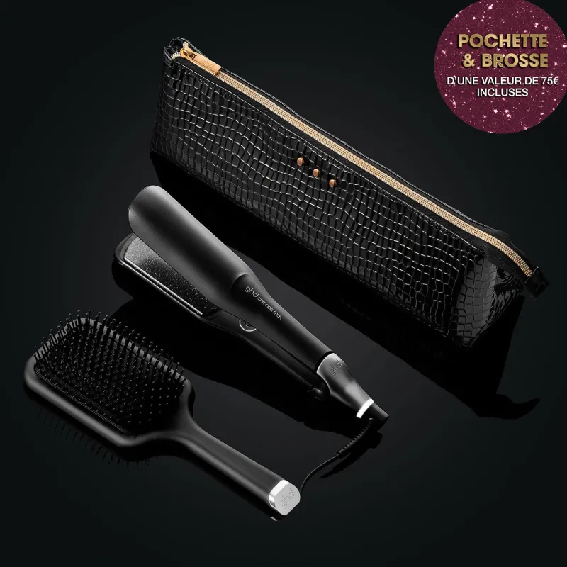 Le coffret d’exception lisseur Chronos Max ghd : le lisseur professionnel aux plaques XXL spécialement conçu pour les cheveux longs, épais et bouclés. Accompagné d’une brosse plate et d’une pochette thermorésistante noire, il offre un lissage 3x plus rapide en un seul passage et des résultats haute-définition qui durent 24h. Son design arrondi permet également de réaliser des ondulations glamour en toute simplicité.