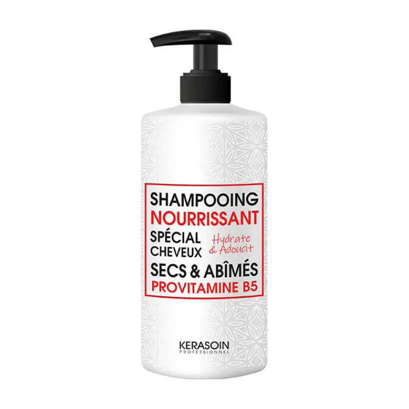 Le shampooing nourrissant pour cheveux secs et abîmés Kerasoin Professionnel hydrate et adoucit les cheveux en profondeur.