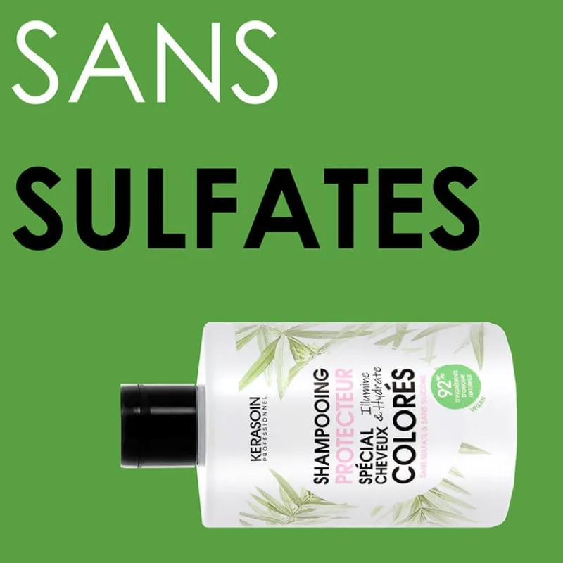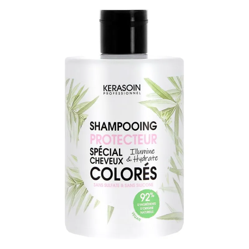 Le shampooing protecteur cheveux colorés Gamme Nature de Kerasoin Professionnel nettoie en douceur, répare & protège les cheveux colorés.