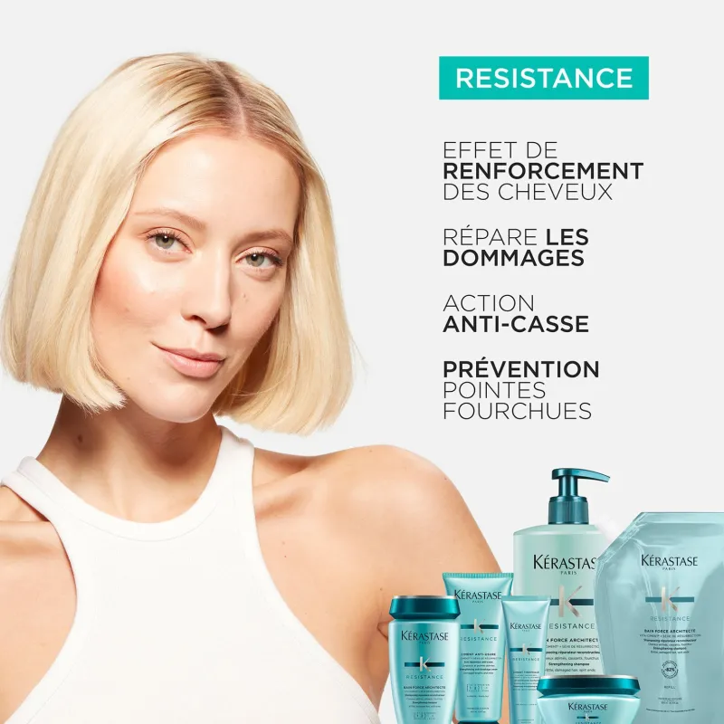 Bye bye les cheveux fatigués ! Reconstruction intense, brillance éclatante et douceur absolue. Votre chevelure retrouve toute sa force avec le bain Force Architecte de Kérastase !