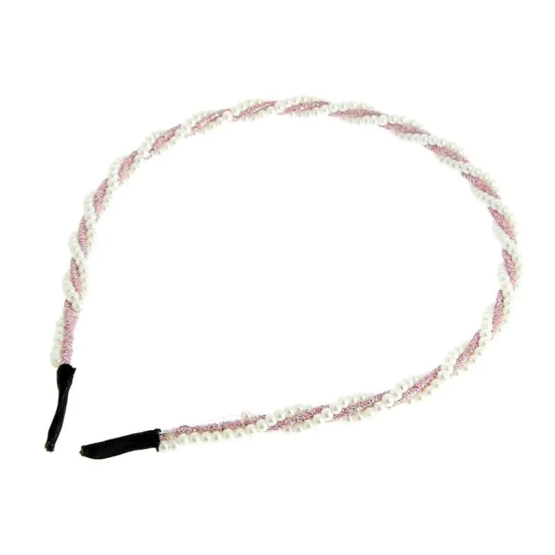 La Boutique du Coiffeur Serre-tête perles et cordon pailleté rose Hot