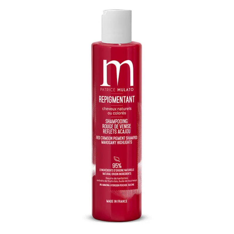 Ravivez les reflets de vos cheveux naturels ou colorés avec les repigmentants Patrice Mulato ! Le shampooing repigmentant prépare idéalement la chevelure à recevoir le soin repigmentant associé !