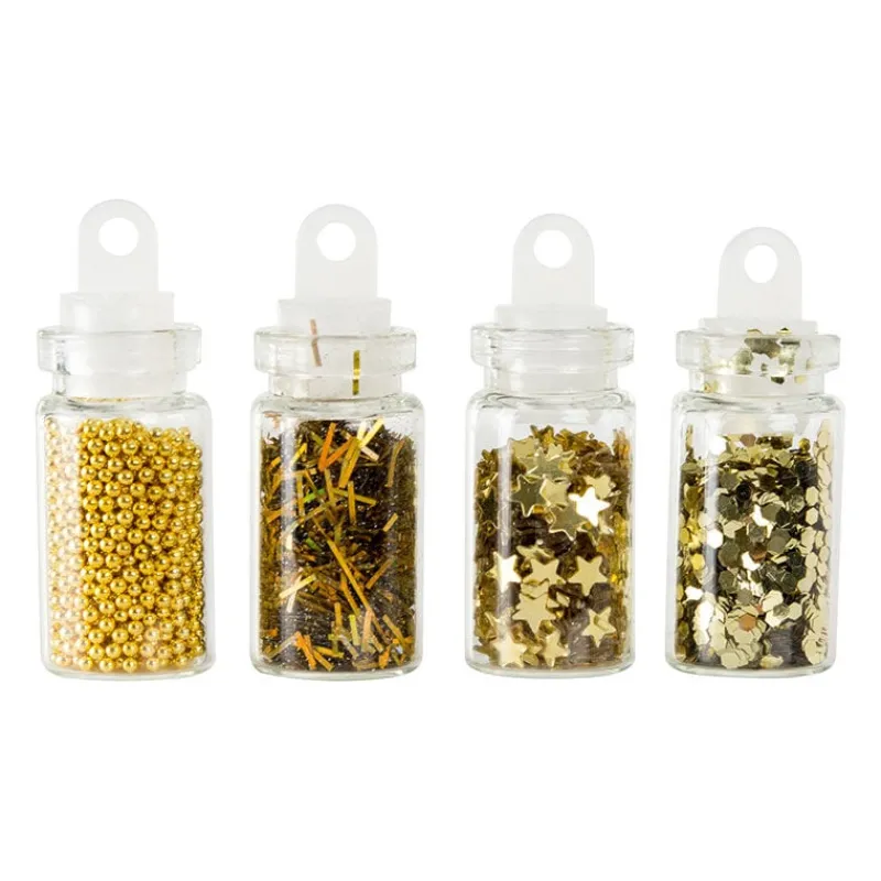 Kit de décors comprenant des petites billes, les paillettes, des étoiles et des hexagones.