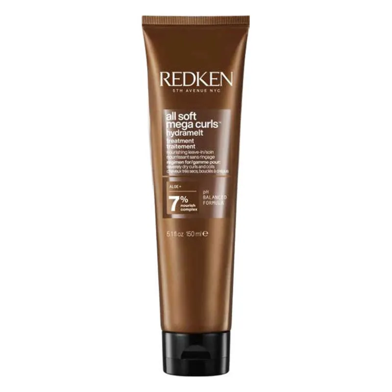Le soin sans rinçage Hydramelt All Soft Mega Curls par Redken hydrate et nourrit les cheveux bouclés, frisés et crépus au quotidien.