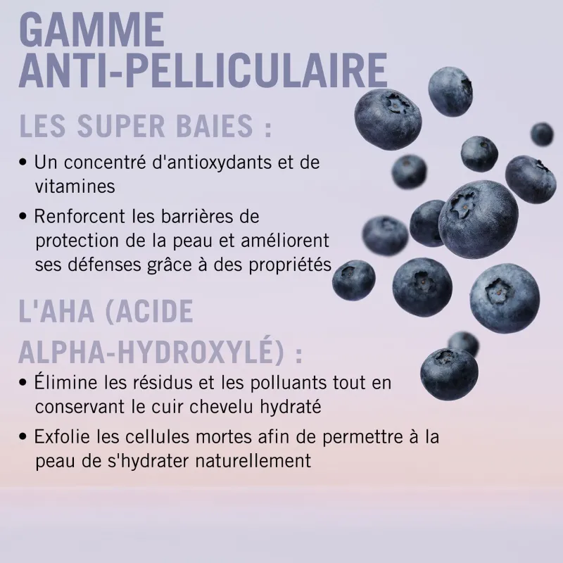• Exfolie en douceur avec l’AHA pour un cuir chevelu sain et rééquilibré.