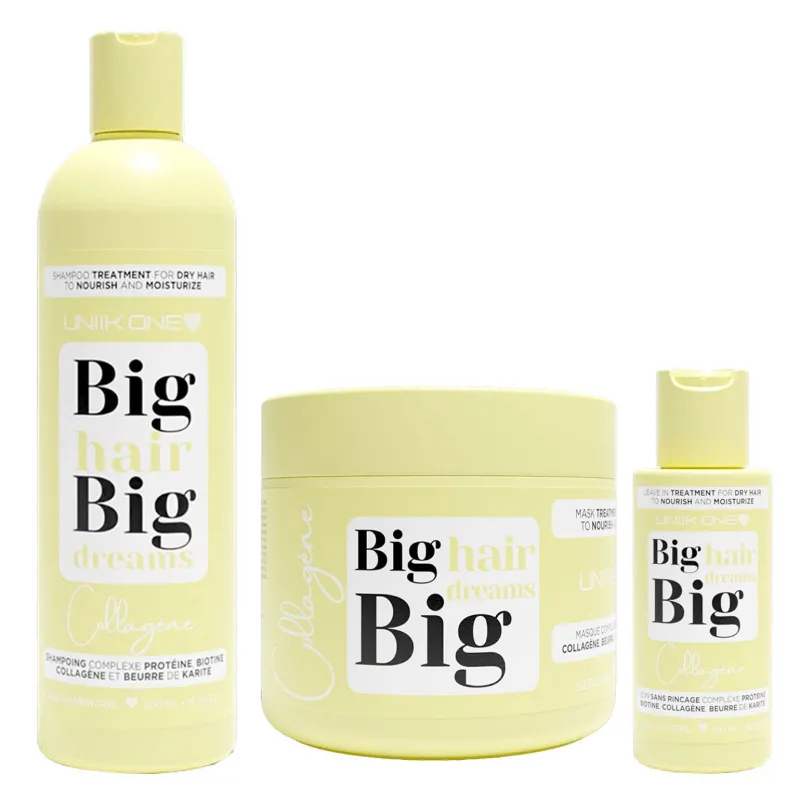 Nourrissez vos cheveux secs et déshydratés en profondeur avec le rituel complet Uniikon Collagène ! Il contient les trois produits essentiels pour une routine très hydratante !