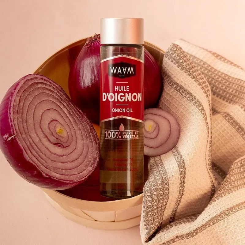L’huile d’oignon de Waam est une huile aux multiples vertus pour la peau, les cheveux et le cuir chevelu.