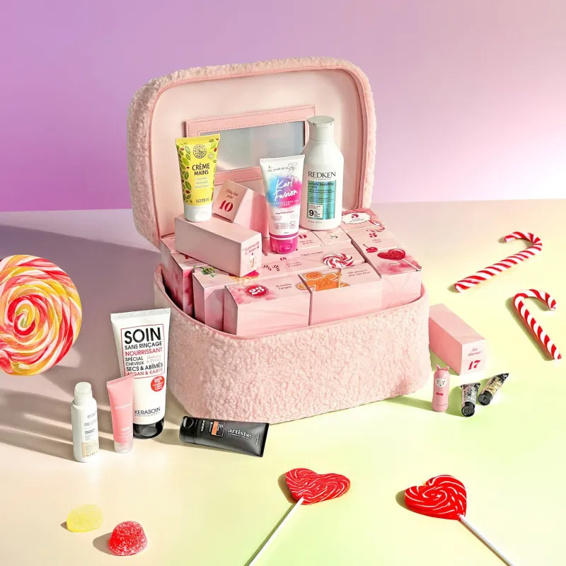 Chaque case dévoile un nouveau trésor signé par les plus grandes marques professionnelles : Les Secrets de Loly, Redken, Myriam.K Paris, Olaplex, Revlon, Wella Professionals, L’Oréal Professionnel, Kiss My Cosmetics, Kerasoin Professionnel, Soteix… et bien d’autres marques à découvrir.