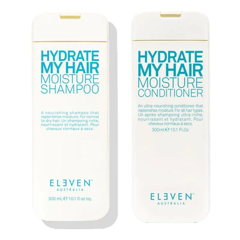 Besoin d’une routine hydratante pour cheveux normaux à secs ? Le duo routine Hydrate My Hair de Eleven Australia est composée du shampooing et de l’après-shampooing hydratants !