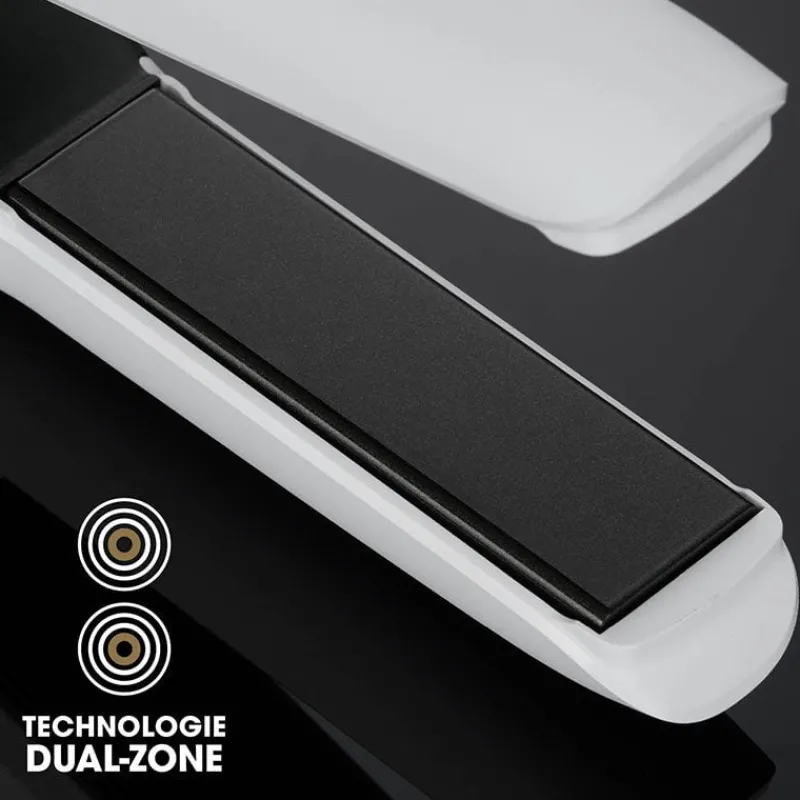 • Technologie dual zone, garantissant la température optimale de coiffage de 185°C en continue.