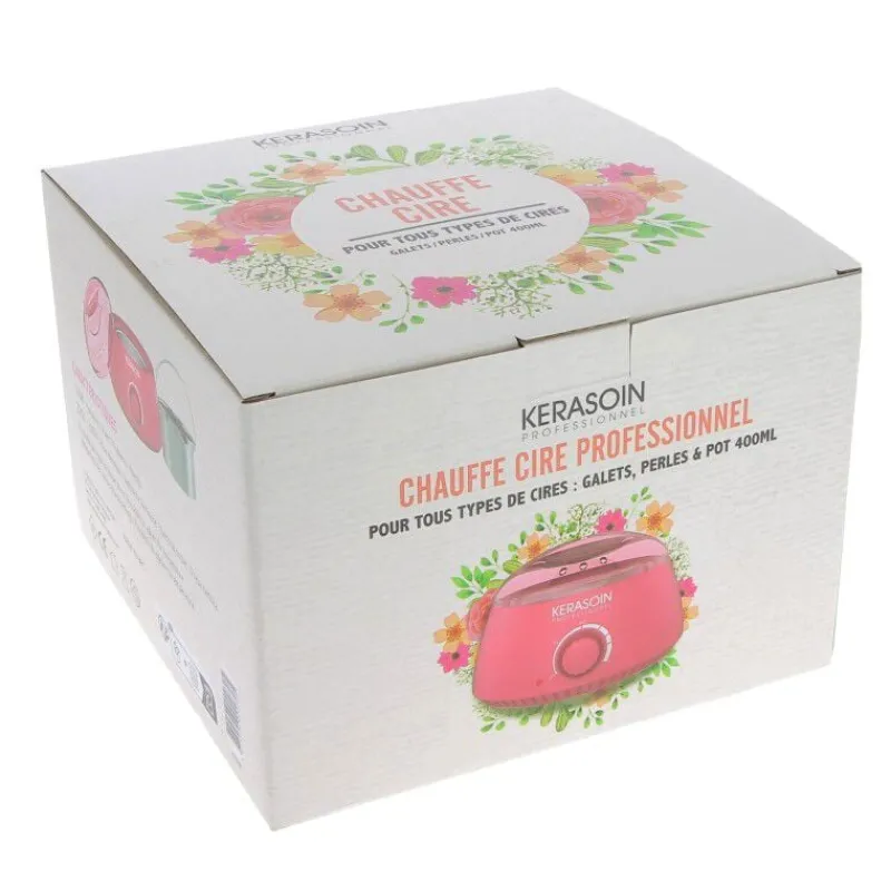 Le chauffe cire professionnel Kerasoin convient pour la chauffe de tous types de cires pelable sans bande : en galets, en perles ou de la cire liposoluble avec bande : en pot de 400ml.