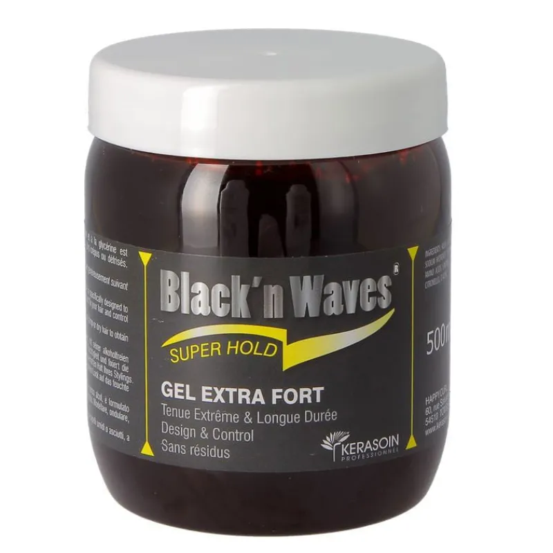 Découvrez le gel extra fort Black’n Waves de Kerasoin Professionnel, il apporte une tenue extrême aux cheveux texturés !