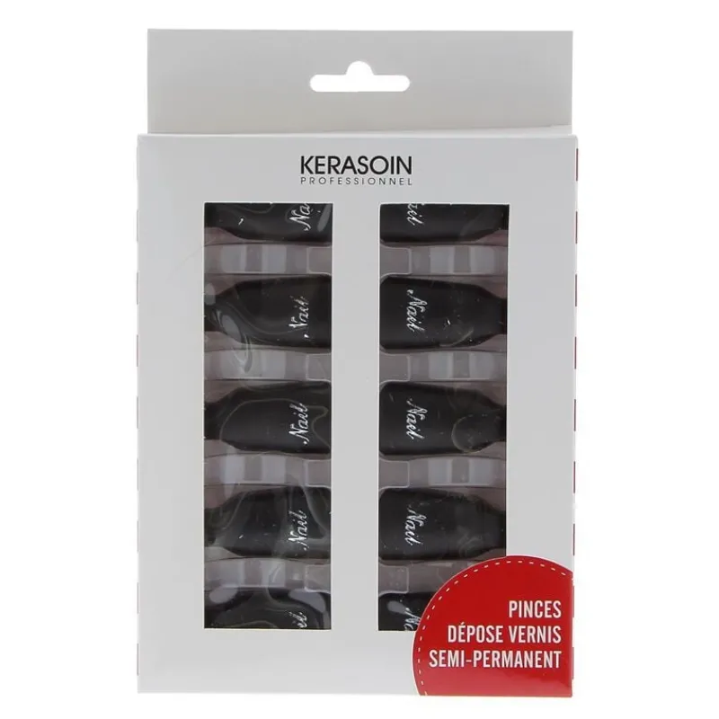 Les pinces de retrait de vernis semi-permanent ou résine Kerasoin maintiendront les compresses imprégnées de solution de fonte sur vos ongles afin de faciliter la dissolution du vernis semi-permanent ou de la résine.