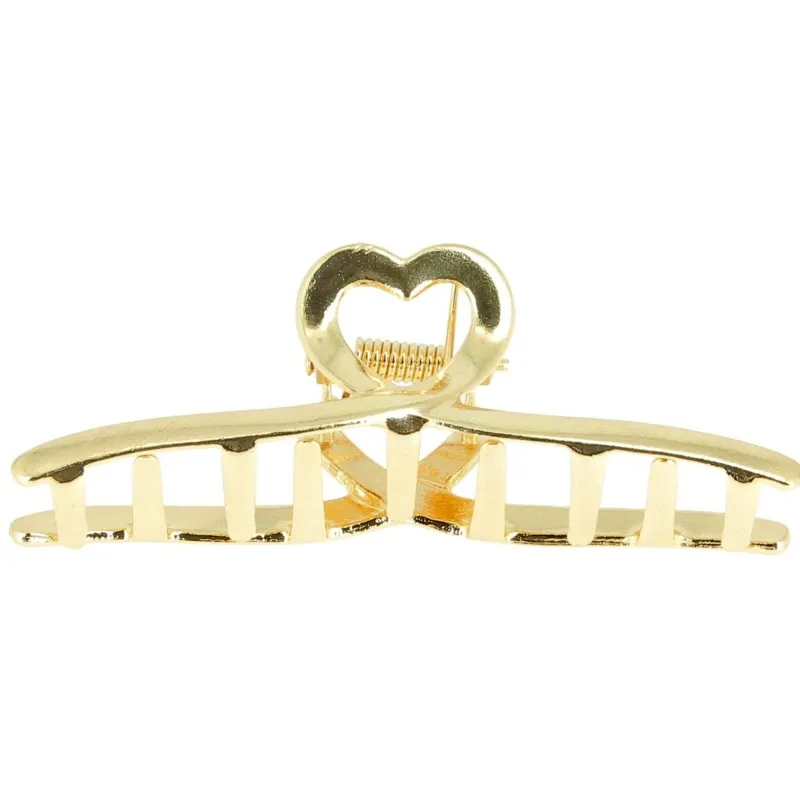 La pince croco cœur doré est une pince en métal doré ornée d’un cœur de chaque côté.