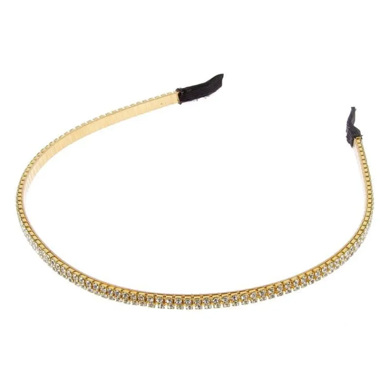 Serre-tête fin métallique doté de deux rangées de strass blancs, pour vous coiffer de façon élégante et briller de mille feux !