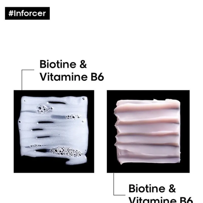 Action anti-casse immédiate avec le duo rituel shampooing + masque Inforcer de L’Oréal Professionnel Paris ! Idéale pour cheveux cassants, cette routine de soin laisse les cheveux doux et résistants.