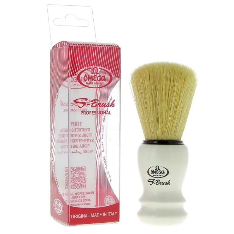 Brosse à barbe en fibres synthétiques avec un luxueux pied blanc signée Omaga.