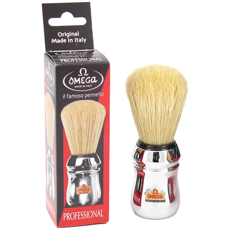 Le blaireau de rasage Omega en poils naturels prépare la peau, soulève le poil et offre un rasage précis, confortable et parfaitement maîtrisé. Idéal sur les barbes dures et épaisses.