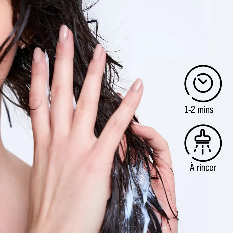 • Démêlez les cheveux et rincez abondamment votre soin.