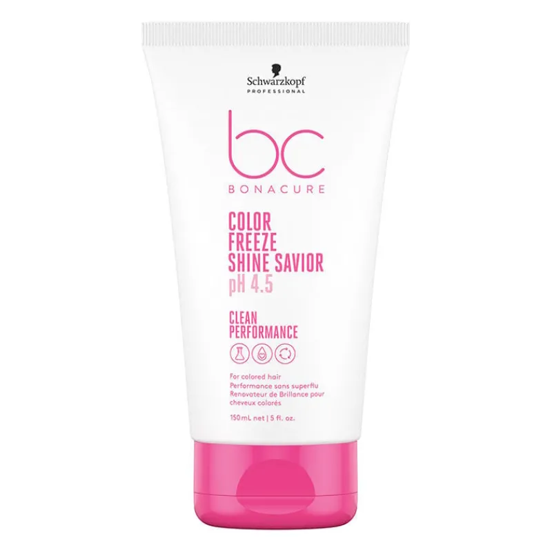 Découvrez le rénovateur de brillance Bonacure Color Freeze de Schwarzkopf Professional, sa formule sans superflu renforce la fibre capillaire, protège la coloration et apporte une brillance éclatante aux cheveux colorés ou aux cheveux décolorés.