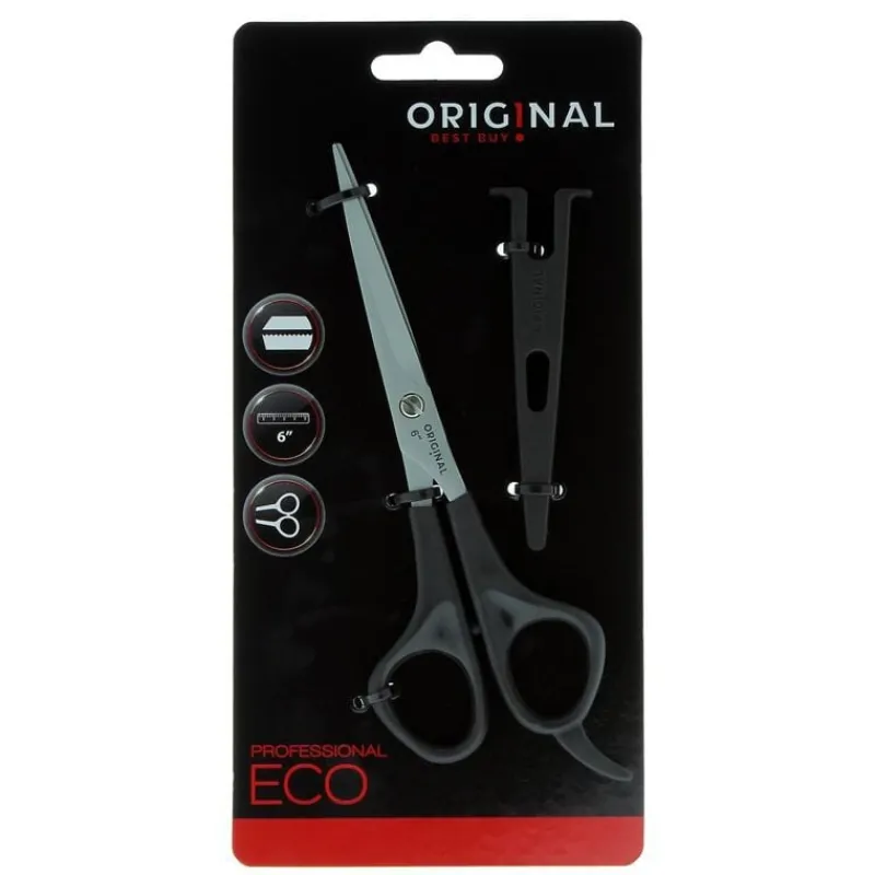 Ciseaux droits de coupe comprenant des anneaux en plastique noir et ergot pour une meilleure prise en main, une lame micro-dentée et une lame fil standard pour couper d’une façon très nette.