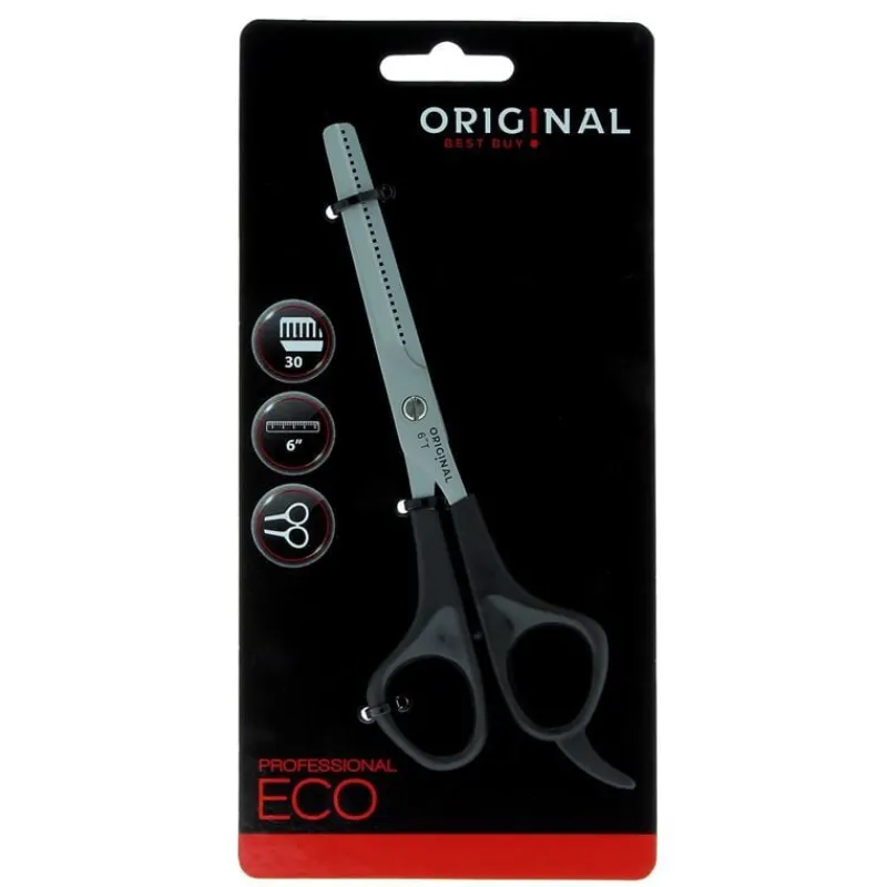 Les ciseaux sculpteurs Eco Mayor avec anneaux en plastique noir pour une meilleure prise en main, et lame dentée (30 dents).