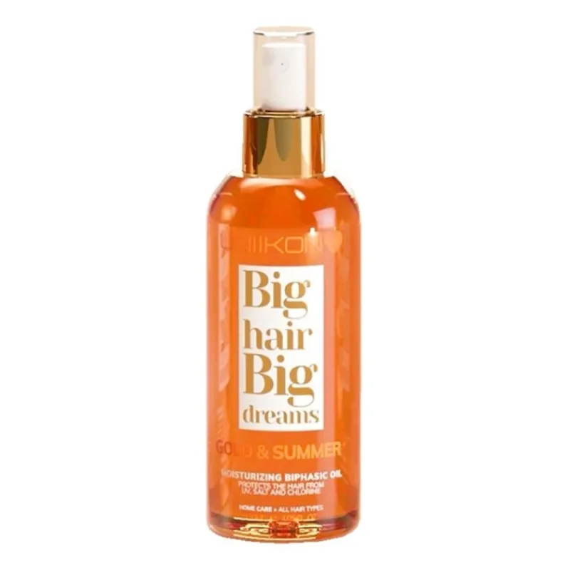L’huile solaire biphasée Gold & Summer de Uniikon laisse un fini ultra doux et brillant sur la peau et les cheveux.